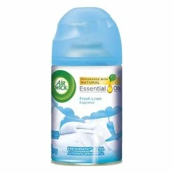 Eliminate unwanted odors from your home or commercial spaces and keep them spelling fresh with this Air Wick Freshmatic Ultra refill. This 6.17-ounce refill is compatible with an Air Wick Freshmatic Ultra automatic dispenser, which releases a fine mist at low, medium, and high frequencies. Each refill delivers up to 60 days of subtle, continuous fragrance to effectively infuse multiple spaces with the familiar scent of clean laundry with the Air Wick Essential Oils Fresh Linen scent.