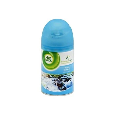 Make a breakroom, waiting room, bathroom, and other commercial areas a more pleasant place to be with the Fresh Waters scent of crisp, clean water. The Air Wick automatic dispenser releases a puff at low, medium, and high frequencies and each 6.17-ounce refill delivers up to 60 days of subtle, continuous fragrance for long-lasting use.