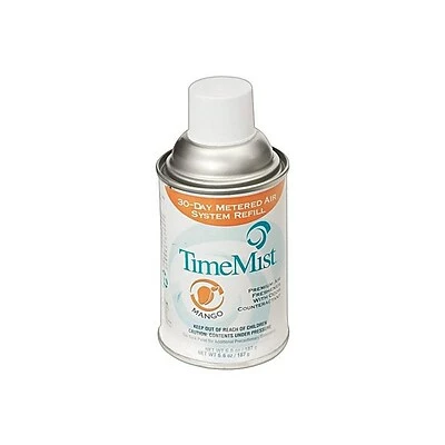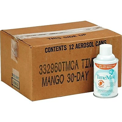 Blast a fruity mango scent into the air to neutralize odors with these metered fragrance dispenser refills. These refills last up to 30 days when the dispenser is set at 15-minute intervals. Odor counteractants keep strong, unpleasant smells at bay in areas as large as 6,000 cubic feet. This mango TimeMist metered fragrance dispenser refill fits all TimeMist metered dispensers.