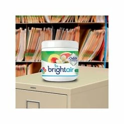 Remove the lid of this solid gel air freshener and place it near a fan to quickly spread freshness throughout your room. The white-peach-and-citrus scent is created with natural oils, which makes it safe to use in any area. This Bright Air Super Odor air freshener needs no electricity or batteries so you can use it anywhere.