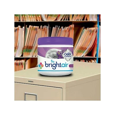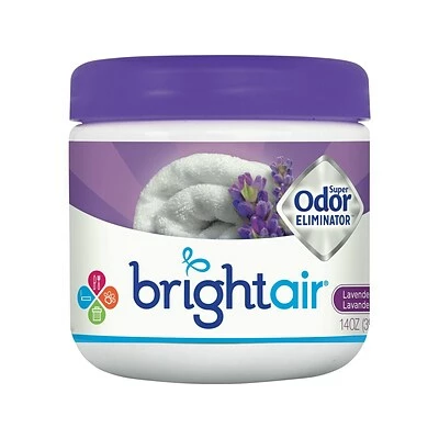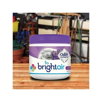 Fight odors anywhere by using this air freshening gel infused with natural oils.? This jar’s twist-off lid makes it simple to remove odors from the air while leaving behind the clean, inviting scent of lavender and fresh linen. This 14-ounce Bright Air gel air freshener safely and effectively removes unwanted odors for up to 60 days.
