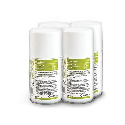 Remove unpleasant odors with these metered air freshener refills. The fresh linen fragrance leaves behind a pleasing scent, while the dry formula prevents spills and drips on surfaces. Each refill contains more than 3,000 metered sprays, providing a month’s worth of odor neutralization. These Brighton Professional air freshener refills contain no CFCs for added peace of mind.