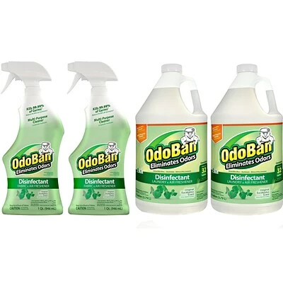 ODOBAN odor eliminator cleans, disinfects, sanitizes, and deodorizes all precleaned hard, nonporous household surfaces. ODOBAN eliminates unpleasant odors on washable surfaces, such as upholstery, carpets, bedding, showers, walls, and floors while leaving a fresh scent. ODOBAN may be used in hospitals, medical and dental offices, nursing homes, daycare centers, nurseries, restaurants, bars, cafeterias, institutional facilities, public restrooms, institutions, schools, athletic facilities, campgrounds, playgrounds, public facilities, transportation terminals, hotels and motels, factories, business and office buildings, buses, ambulances, trains, and taxis. Excellent for fire restoration.